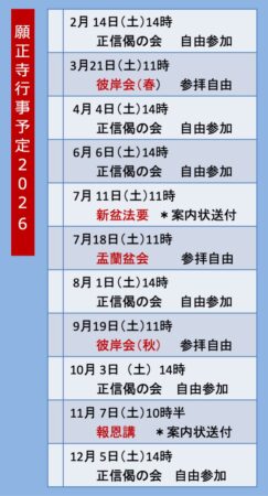 2026年願正寺行事予定